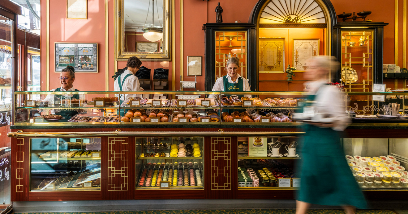 Et besøg i Conditori La Glace er forbundet med en særlig atmosfære. Det første, De møder, er montrerne med sortimentet af dagens udvalg af kager. Dernæst de mange serveringsafdelinger, som bidrager til den historiske stemning med noget af det oprindelige møblement fra 1890’erne, interiør fra 1924 og udvidelsen i 2015. Kom og nyd livet i Conditoriet og ikke mindst de sande stjerner, vores berømte lagkager, konditorkager, småkager, is og konfekt, de fleste skabt fra oprindelige opskrifter af generationer af ildbesjælede La Glace konditorer til generationer af dedikerede kageelskere.